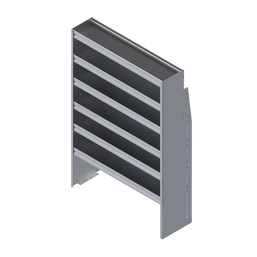 Aluminum six shelf units are one of the main starting points for all mobile storage solutions. All Westcan bin shelving units can be configured as a work station by adding accessories such as in-shelf workbench, LED lighting and freon tank storage ribs. Westcan’s aluminum shelving is designed to safely carry all your hand tools, safety gear and inventory just to name a few. Each shelf has a load capacity of 55lbs per linear foot. You will find that Westcan bin shelving has contoured end panels to get the best possible fit to utilize your floor space. Bins are sold separately when ordering complete units or individual shelves. See the reccommended loading guide for the best fit possible. Westcan offers maximum versatility on our end panels which allows you to build your shelving with 1/2″ increments. We believe in using only quality materials. Our shelf decks are made from durable CARB 2 compliant plywood that offers ultra low formaldehyde emissions to ensure our products are safe for everyone to use. All the installation mounting brackets and hardware are included in our shelving units. Depending on level of trim on your vehicle, modifications may be required.